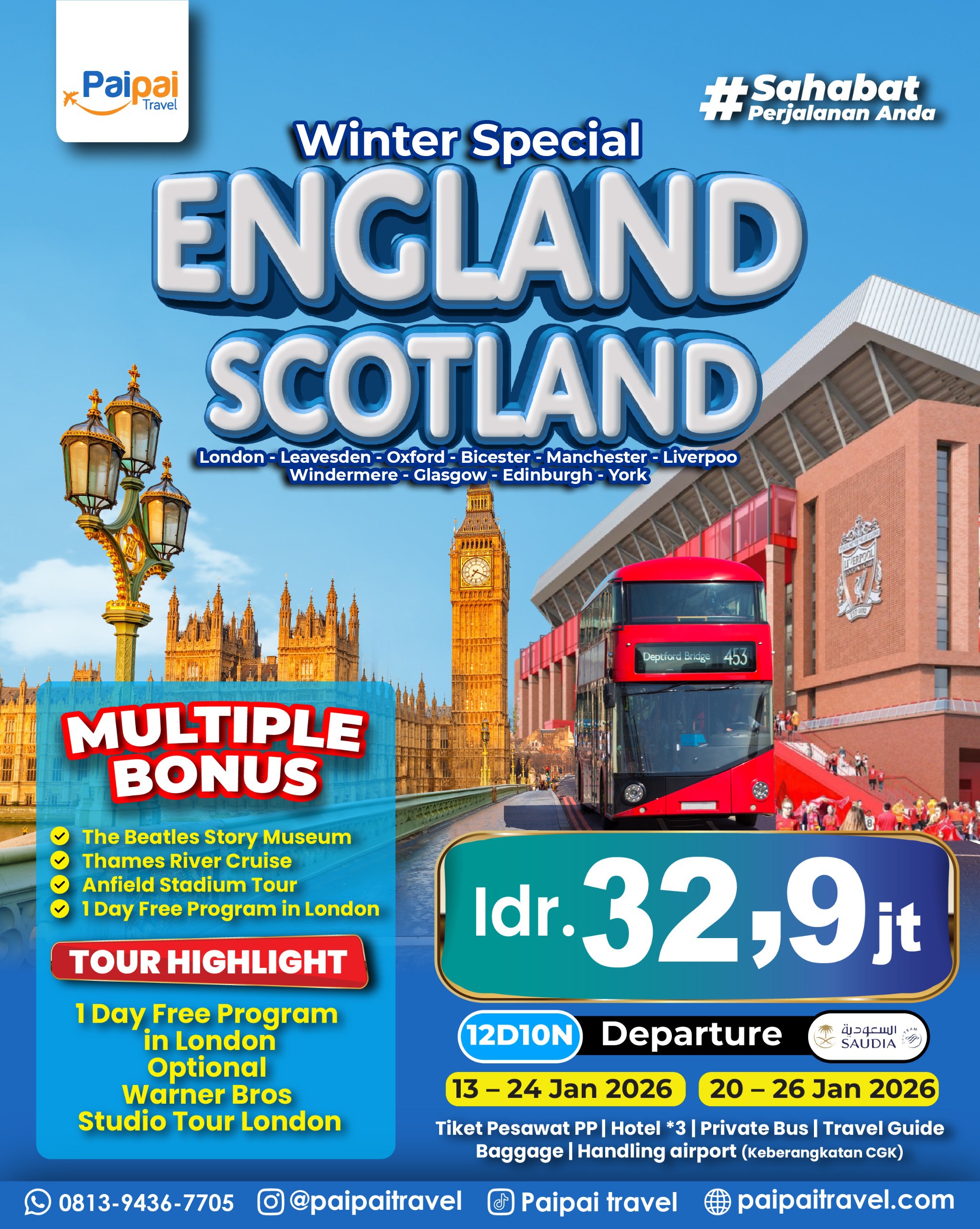 • Sesampainya di Tanah Air, maka berakhirlah perjalanan anda bersama Paipai Travel. Semoga perjalanan ini menjadi kenangan yang indah untuk kita semua, terima kasih dan sampai jumpa dalam trip berikutnya.